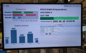 Szerepelnek rajta a gyártott termék adatai, a gyártandó darabszám, a gyártott darabszám és a elméleti előrehaladáshoz képest az aktuális állapot státusza: előrehaladás, vagy késés.
